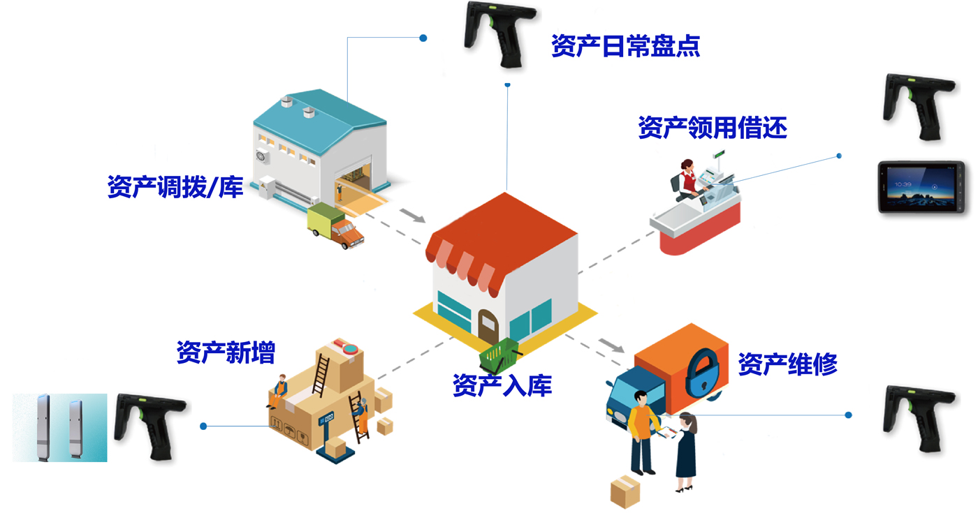 通過對固定資產使用RFID管理,主要用來管理固定資產全生命周期過程的使用管理,包括從資產的入庫、領用、借用及歸還、變更、轉移、調撥、報廢、維修等過程,用于企業進行固定資產的精細化管理,并提高固定資產的利用率;對資產采購、領用、退回、調撥、報廢審批流程進行嚴格控制;規范企業低值易耗品的采購、領用的過程,實現資產的全周期管控、各環節管理、資產責任到人RFID盤點及賬實相符的管理目標