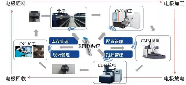 具體實現方式是對每個電極管安裝RFID標簽,從晶體管入庫、生產、測量、放電的全流程進行瓜農空。通過對庫存、配置、現場的數據采集,從電極的設計延伸到制造、測量和使用的全過程,使數據和制造無縫交互,實現全流程的自動化,無人化。